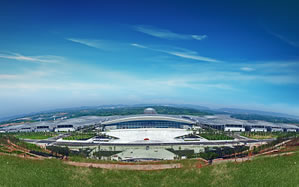 重慶國際博覽中心整體呈蝴蝶造型。其場館室內(nèi)展覽面積20萬平米,共16個(gè)全平層無柱式展廳,單個(gè)展廳使用面積1.15